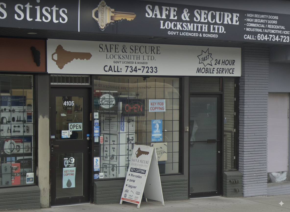 At Safe & Secure Locksmith Vancouver, we’re your trusted 24/7 locksmiths serving homes, businesses, and drivers across the city. Whether you’re locked out of your car, need urgent lock repairs at home, or require high-security solutions for your business, our licensed professionals are ready to help anytime—day or night. With fast response times, reliable mobile service, and a fully equipped shop in Kitsilano, we make locksmith services simple, convenient, and stress-free.